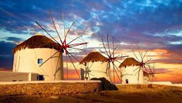 Among the most Greek islands, Mykonos island is located almost in the centre of the Cyclades complex. This is the Ibiza of Greece. A beautiful island in the Cyclades, which looks just like the postcards: white little houses with flowers and blue windows and doors, hand painted streets, windmills, pigeon keepers, chimneys, lots of little churches and wonderful restaurants and cafes.